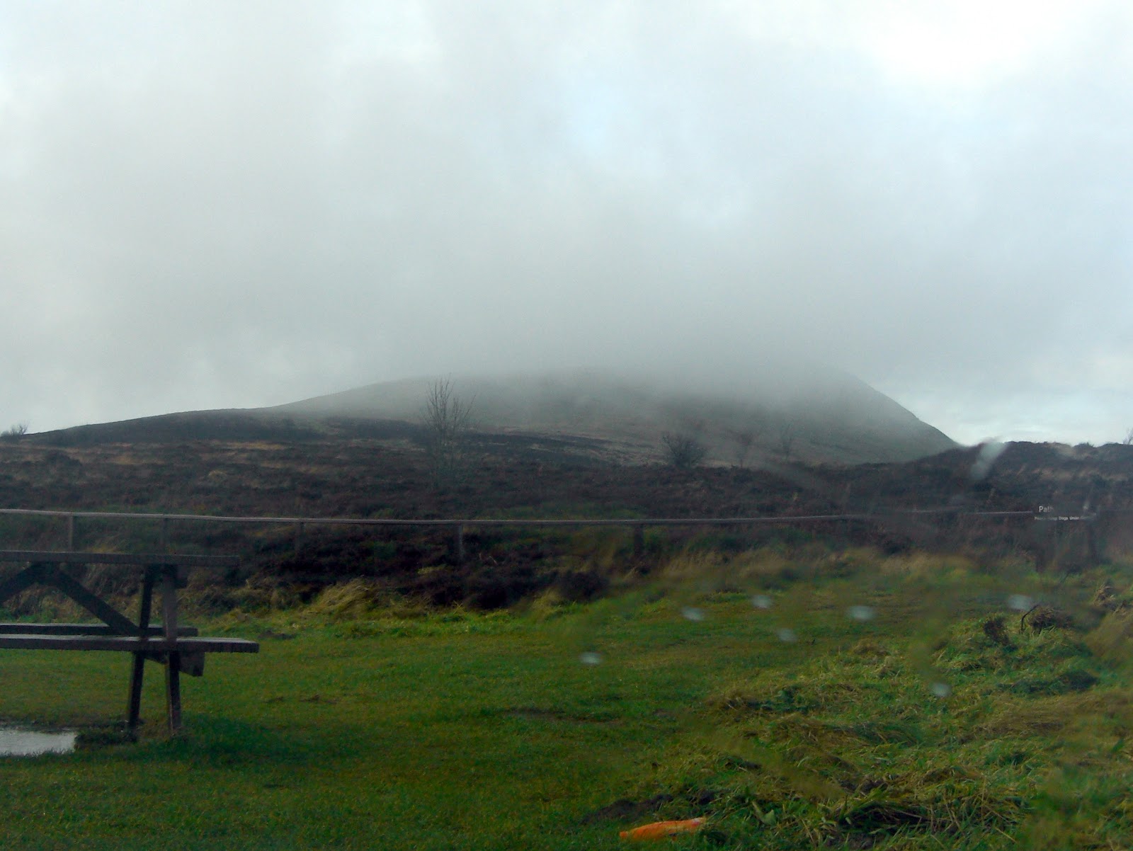 Back at the car park and looking up the hill. Rain stopped and cloud has decended!